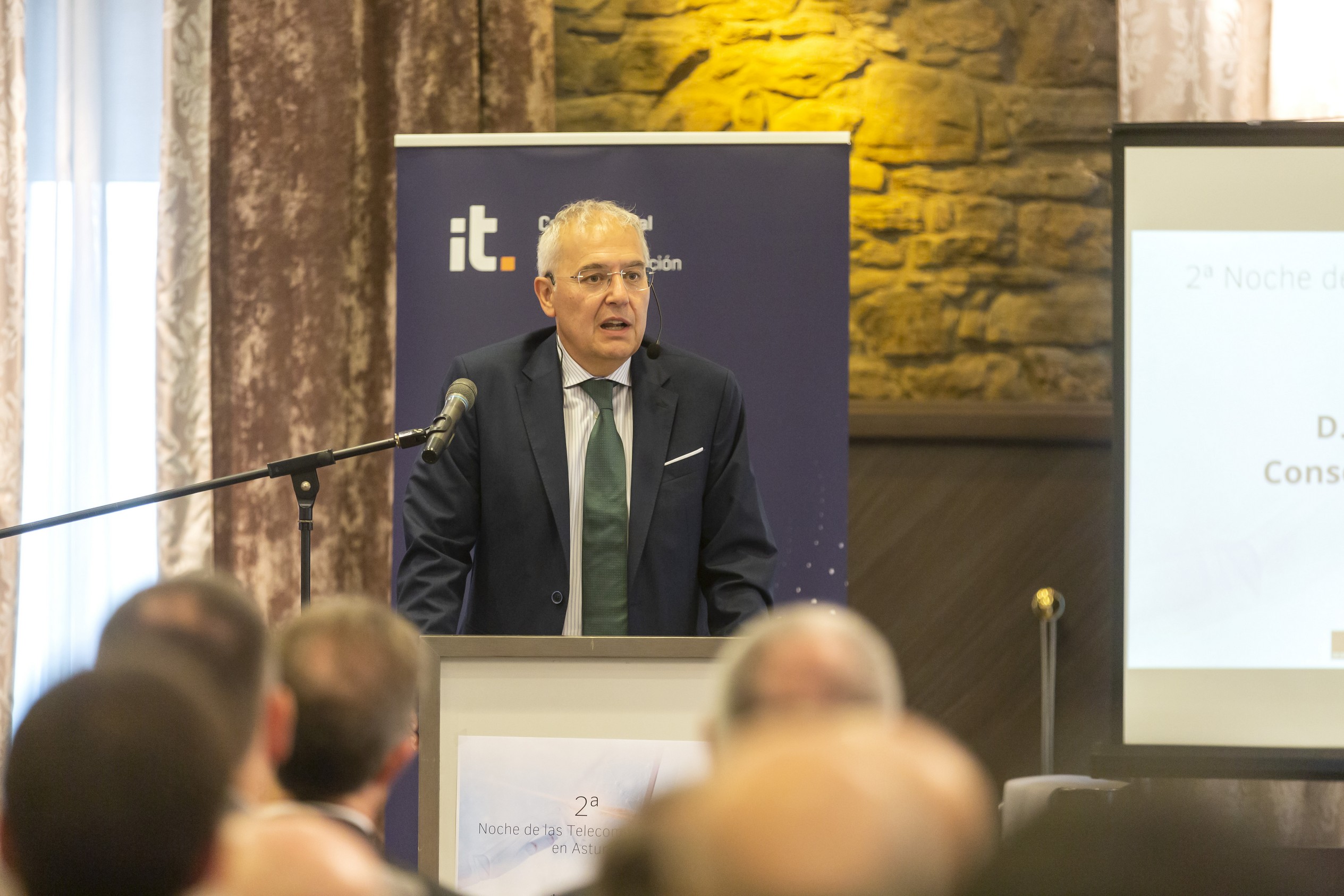 D. Fernando Las-Heras, decano delegado del COIT y presidente de la delegación de la AEIT en Asturias inauguró el acto dando la bienvenida a los asistentes y repasando la evolución de las tecnologías de la información y las comunicaciones en las últimas décadas y la gran importancia de los ingenieros de telecomunicación como pieza fundamental en la transformación digital. Las-Heras puso de manifiesto el reto que supone mantener el talento de los ingenieros de telecomunicación en la comunidad autónoma, ya que se trata de profesionales altamente cualificados con una formación totalmente transversal, muy versátiles, con grandes capacidades de gestión y amplios conocimientos técnicos que hace que estén muy demandados por todas las empresas, no únicamente las empresas tecnológicas.