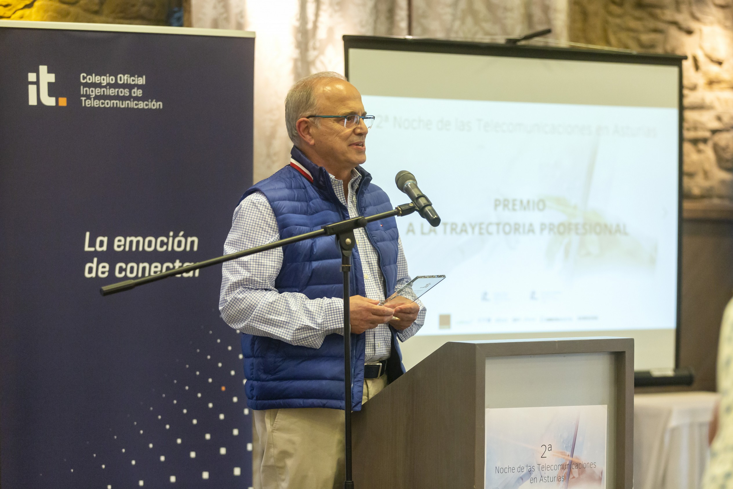 El Premio a la Trayectora Empresarial para D. Julio Avello, quien fuera Presidente de la Delegación de la Asociación de Ingenieros de Telecomunicación en Asturias durante más de 20 años y es responsable de todo el servicio de telecomunicaciones y de atención telefónica del Servicio de Emergencias de Asturias. Avello hizo una llamada a la responsabilidad por parte de las empresas para cuidar al colectivo de los ingenieros de Telecomunicación, dándoles el lugar que se merecen y apostando por salarios acordes a su formación y a la alta demanda en el sector.